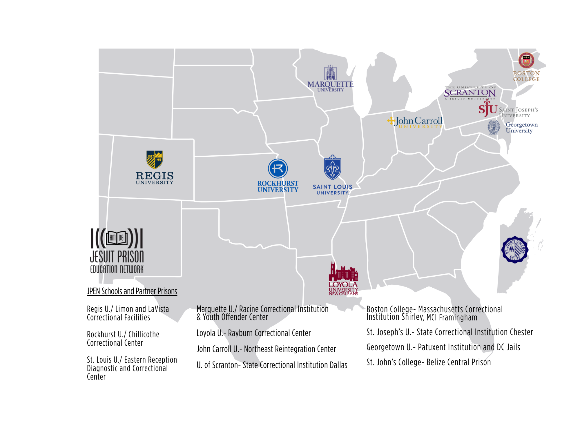 Lastly, maps can spark curiosity and invite questions about “What’s next?” JPEN is in a dialogue and supporting five other Jesuit colleges exploring a prison education program. The schools include: Loyola University Chicago, St. Peter’s University in Jersey City, Fairfield University, LeMoyne in Syracuse, NY and St. John’s in Belize.